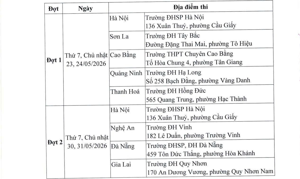 – Công bố điểm thi SPT: trước ngày 15/6/2026.