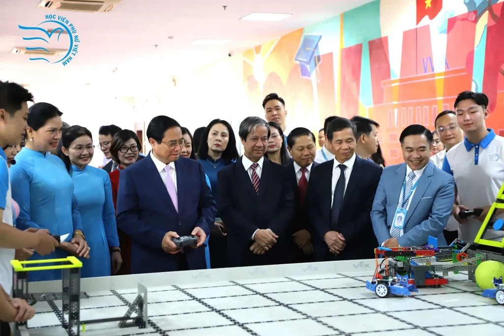 Thủ tướng Phạm Minh Chính trải nghiệm điều khiển robot cùng sinh viên ngành CNTT, Học viện Phụ nữ Việt Nam