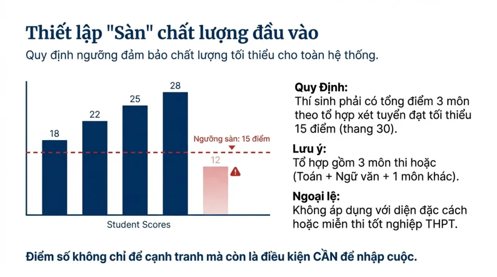 Quy định này giúp tạo một rào cản tối thiểu về năng lực học thuật, tránh tình trạng “điểm sàn quá thấp” và góp phần nâng cao chất lượng đầu vào chung trên toàn quốc.